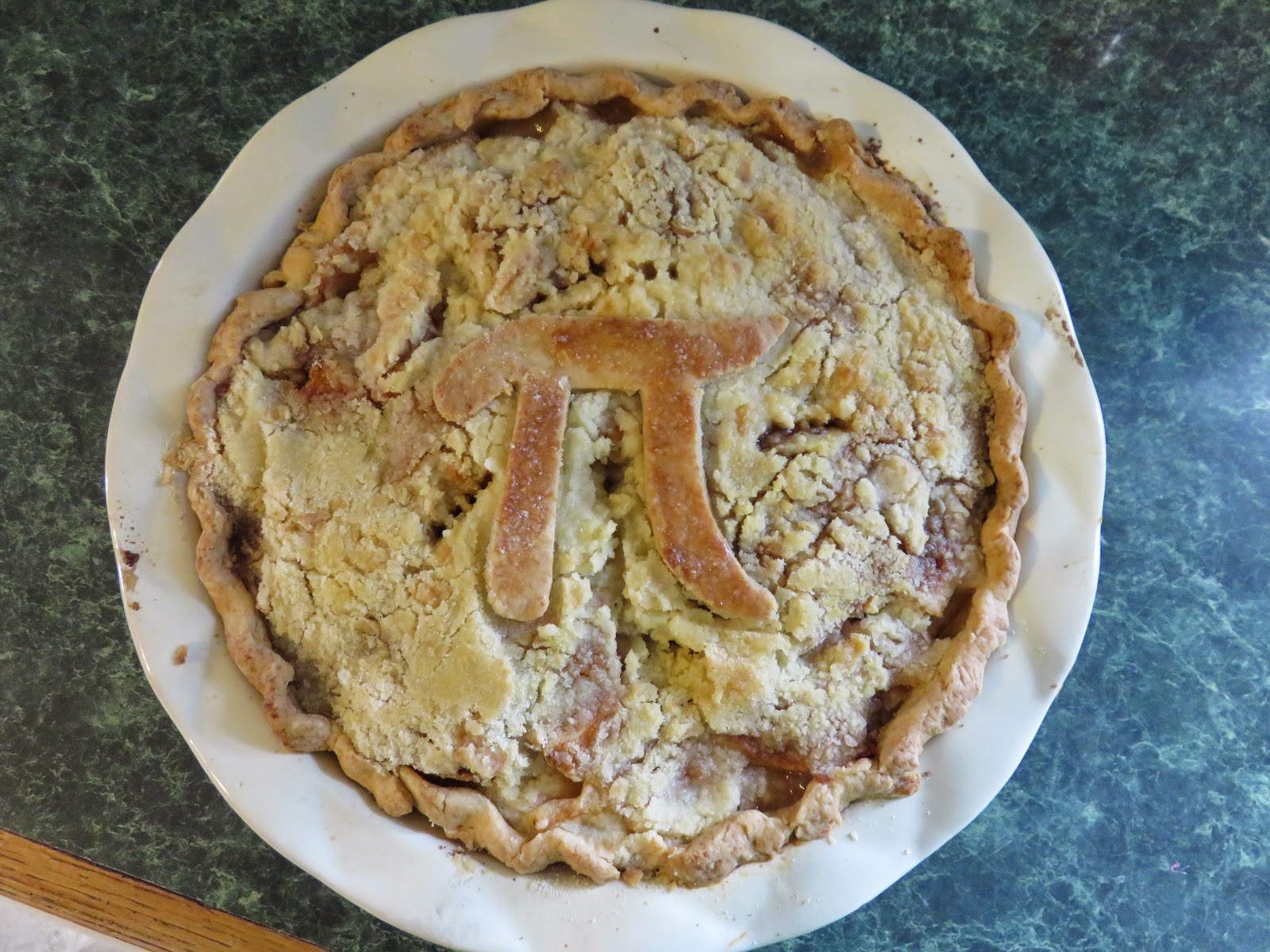 For dinner, I made a chicken pot pie.  I've never made one before, but it was really delicious.  I was so proud of the pie symbol that I cut into the top crust, but as soon as I got it on and sealed, I realized that I had forgotten to add the spices to the filling.  I had to cut the whole top crust off, stir in the spices, and then 'paste' it back on.  It didn't look nearly as nice, but then the filling overflowed while cooking and ruined the pi symbol anyway.  Regardless, it was a very nice dinner!