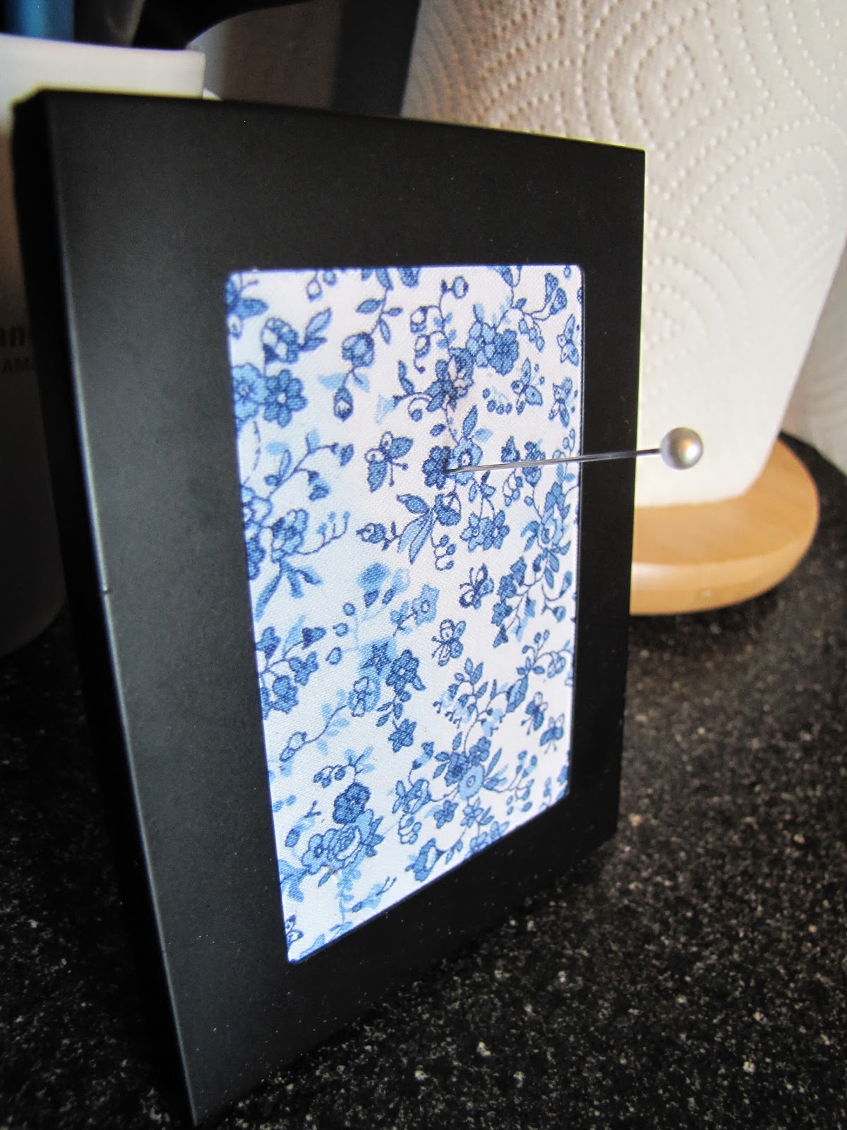 No, our toaster oven doesn't get any cleaner than that. (And where has the infamous chore chart gone? Don't worry, he'll be back. He's just been moved to a more prime location.) And check out my new ring holder! I wanted one for the kitchen for when I'm cooking, and I had a little strip of leftover fabric from my curtains, so....
